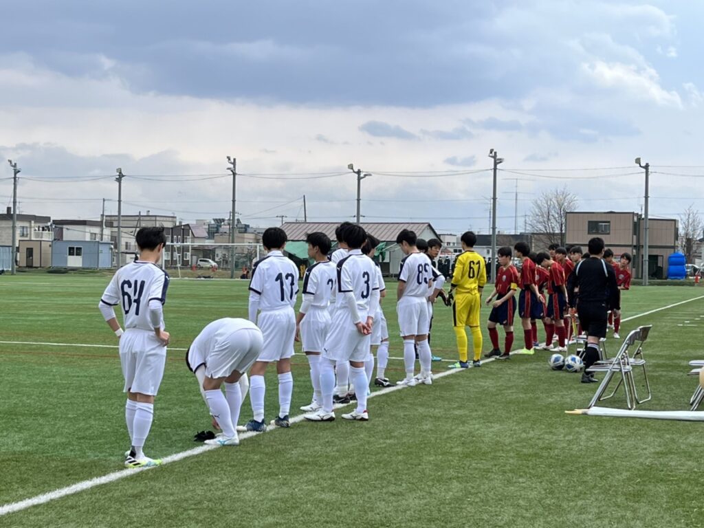 対戦相手は札幌西高校前半14分ロングフィードから66日向空が頭で競り、そのボールを7太内田拓翔の素晴らしいミドルシュートで先制します。しかし、その3分後、ボールロストからの相手のカウンターで失点し、同点となります。