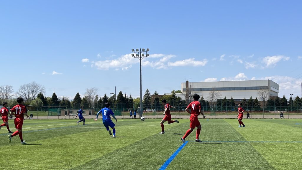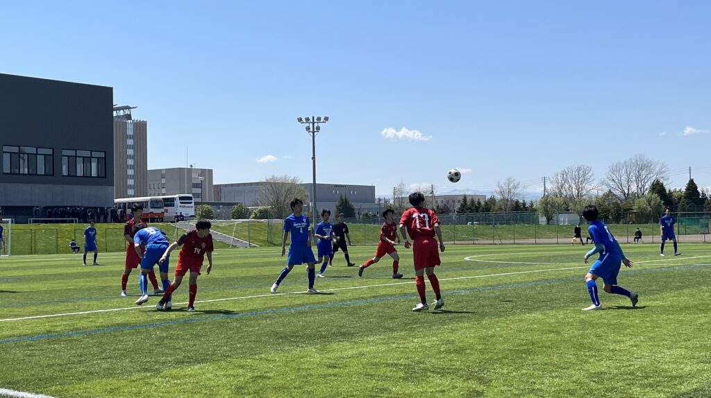 インターハイ予選特有の緊張感の中、互いに手堅い入り方となりますが、ロングボールのこぼれ球から日大がチャンスをつくります。